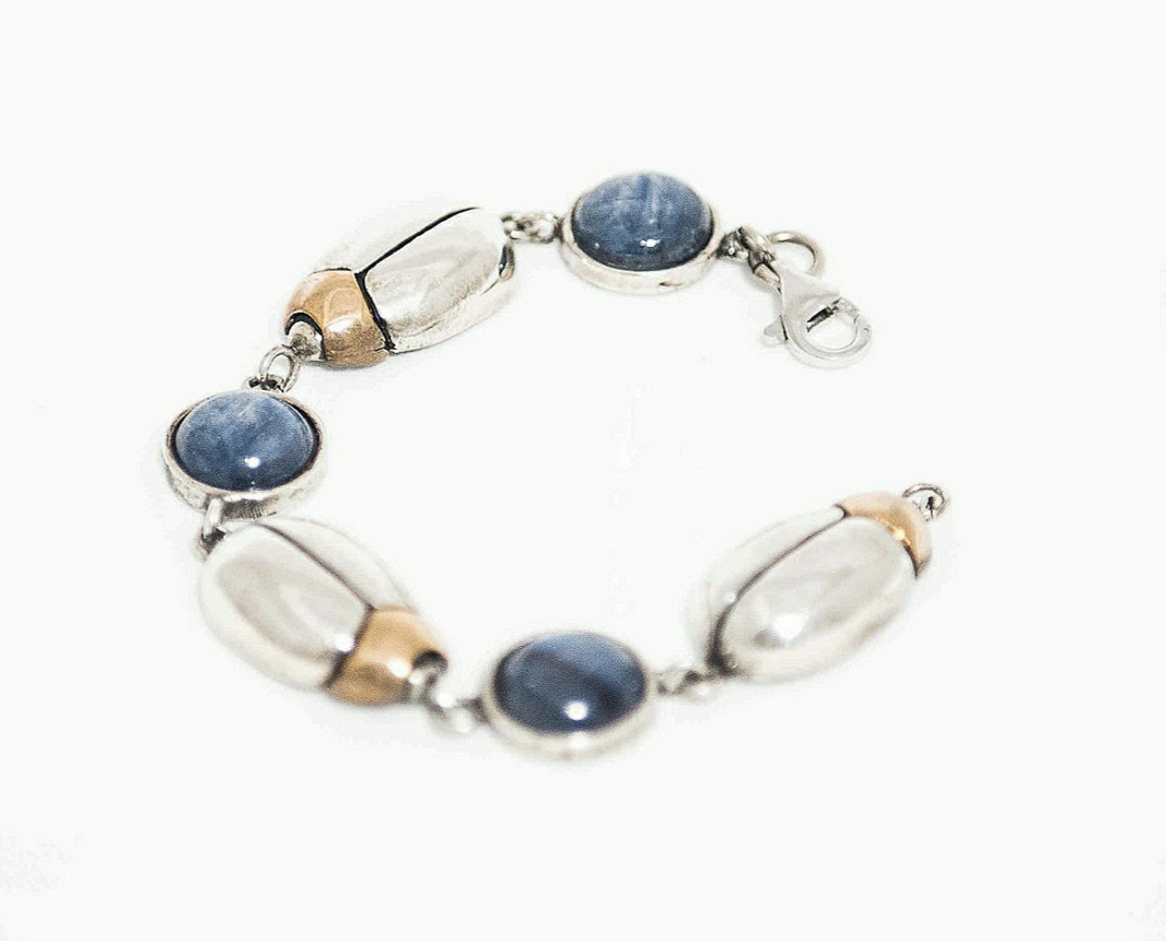 Bracciale in argento 925‰ e bronzo con cianite.