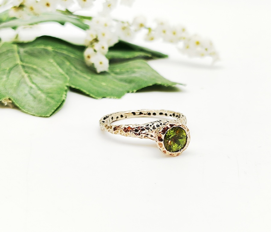 Anello cromia in oro 9 kt con peridoto da 6 mm realizzabile anche con topazio azzurro o giallo, ametista, tormalina