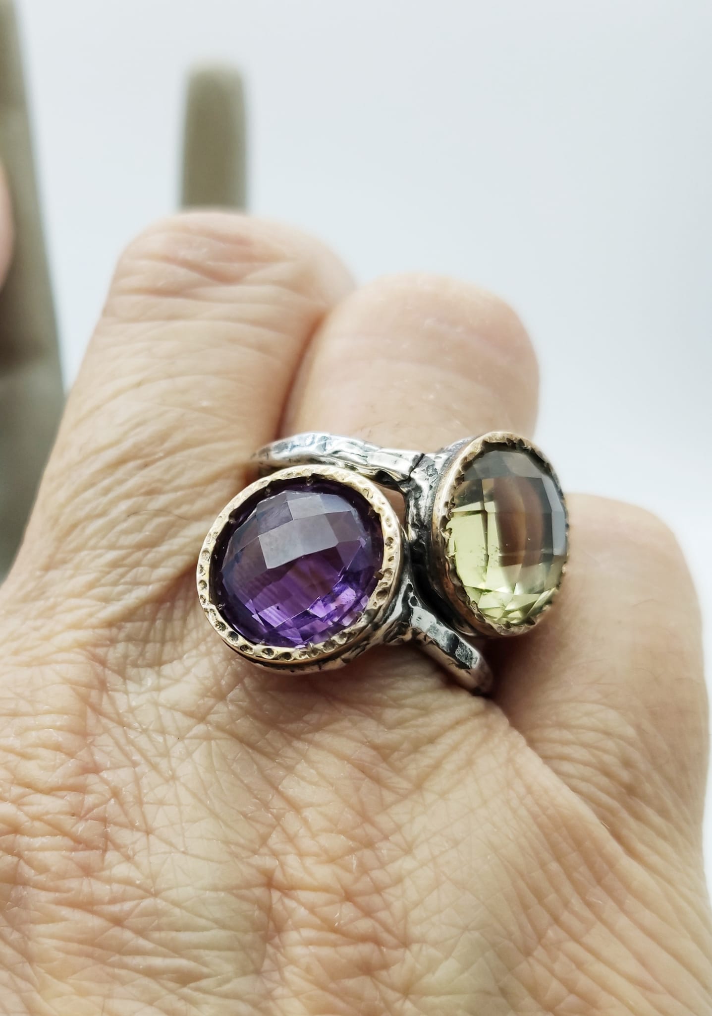 Anello in argento 925‰, castone in bronzo con topazio citrino briolè sfaccettato