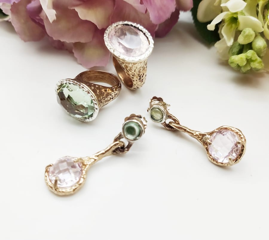 Anello in bronzo con prasiolite verde