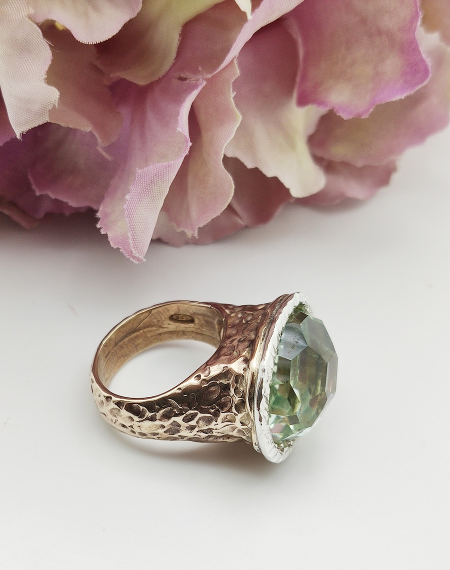 Anello in bronzo con castone in argento e pietra prasiolite verde