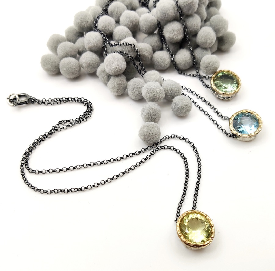 Collana in argento 925‰, castone in bronzo con prasiolite. Lunghezza 42 cm.