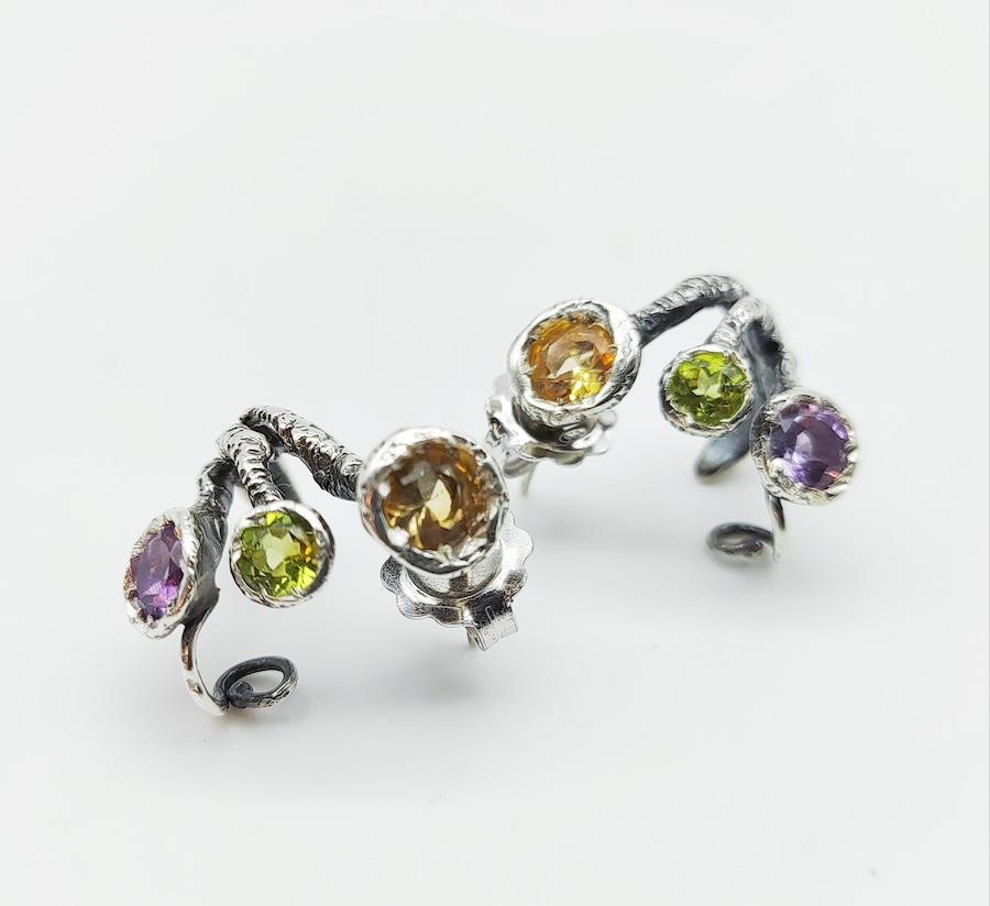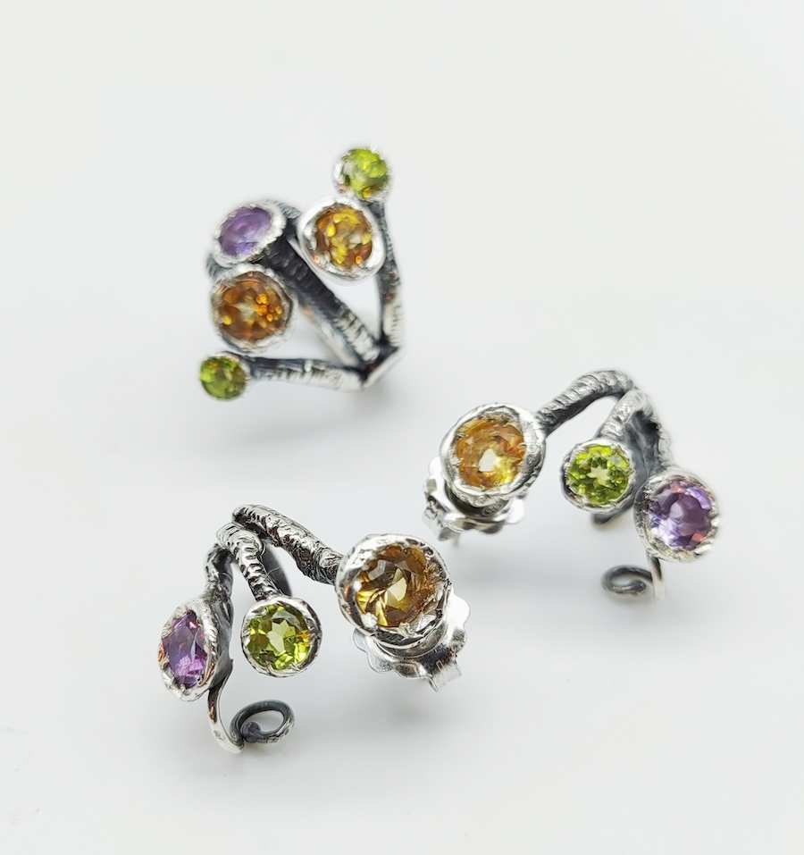 Orecchini in argento con pietre naturali, disponibili in diverse varianti di colore: peridoto, tormalina, topazio citrino o sky, prasiolite, ametista.