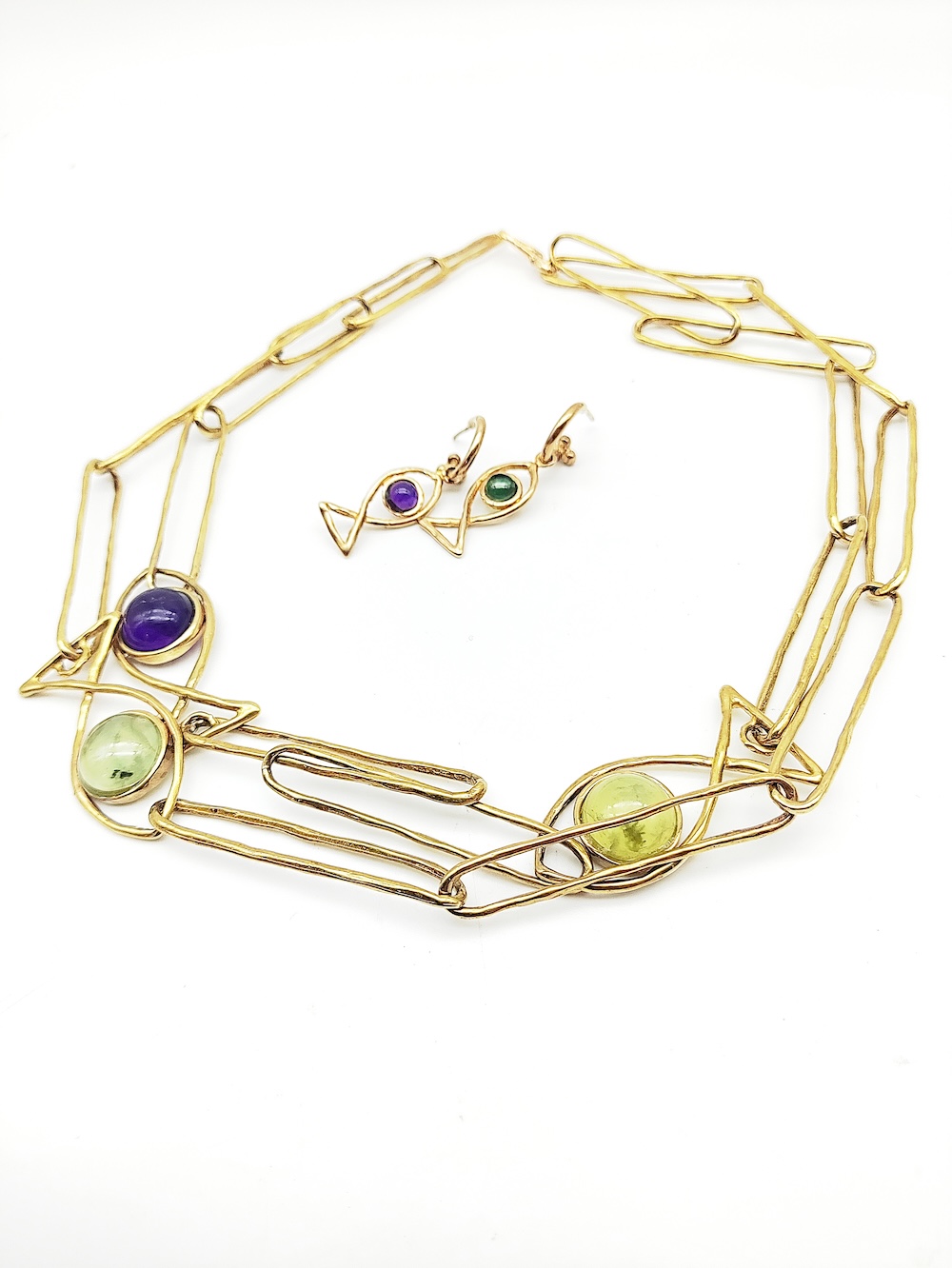 Orecchini in bronzo con ametista e prenite